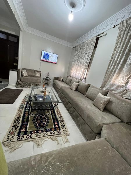 شقة مفروشة للكراء الشهري بحي للا الشافية فيها 2 بيوت وصالة 3800 درهم للعائلات او بنات