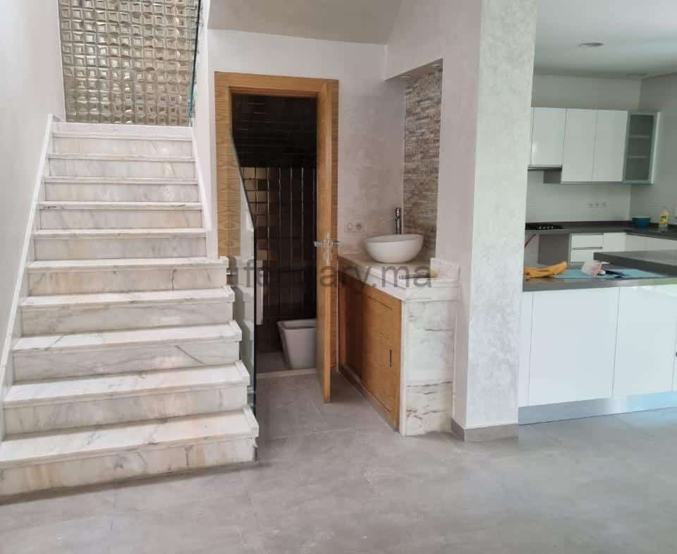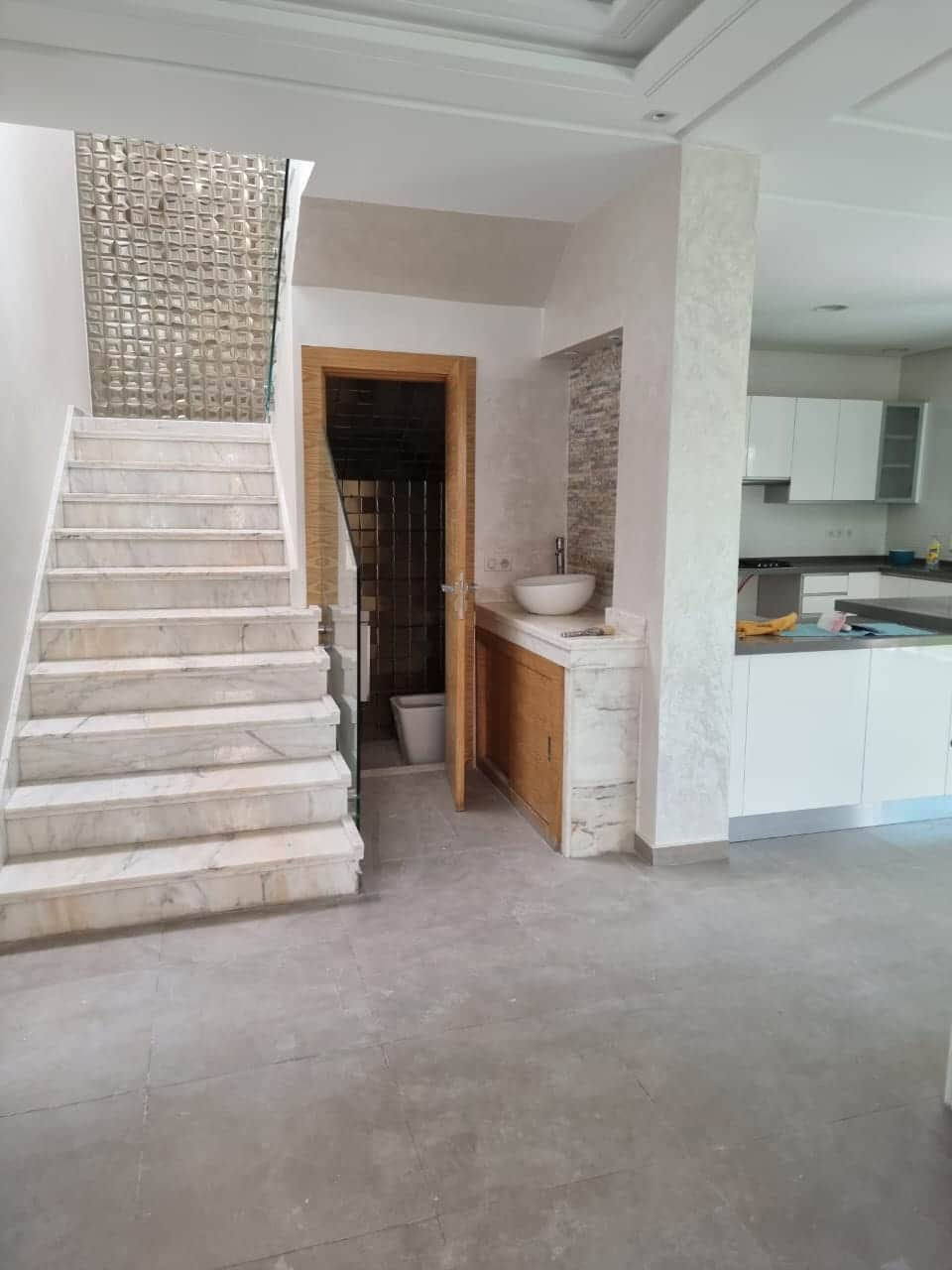 Dans une résidence avec piscine très belle villa vide en vente, de sup 280m² très bien entretenue quartier sécurisé, 25min de hay riad et proche de toutes les commodités.