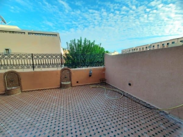 À LOUER VIDE DE 3 CHAMBRES AVEC UNE GRANDE TERRASSE SITUÉE DANS UNE RESIDENCE FERMÉE AU QUARTIER IZDIHAR – MARRAKECH 40000.